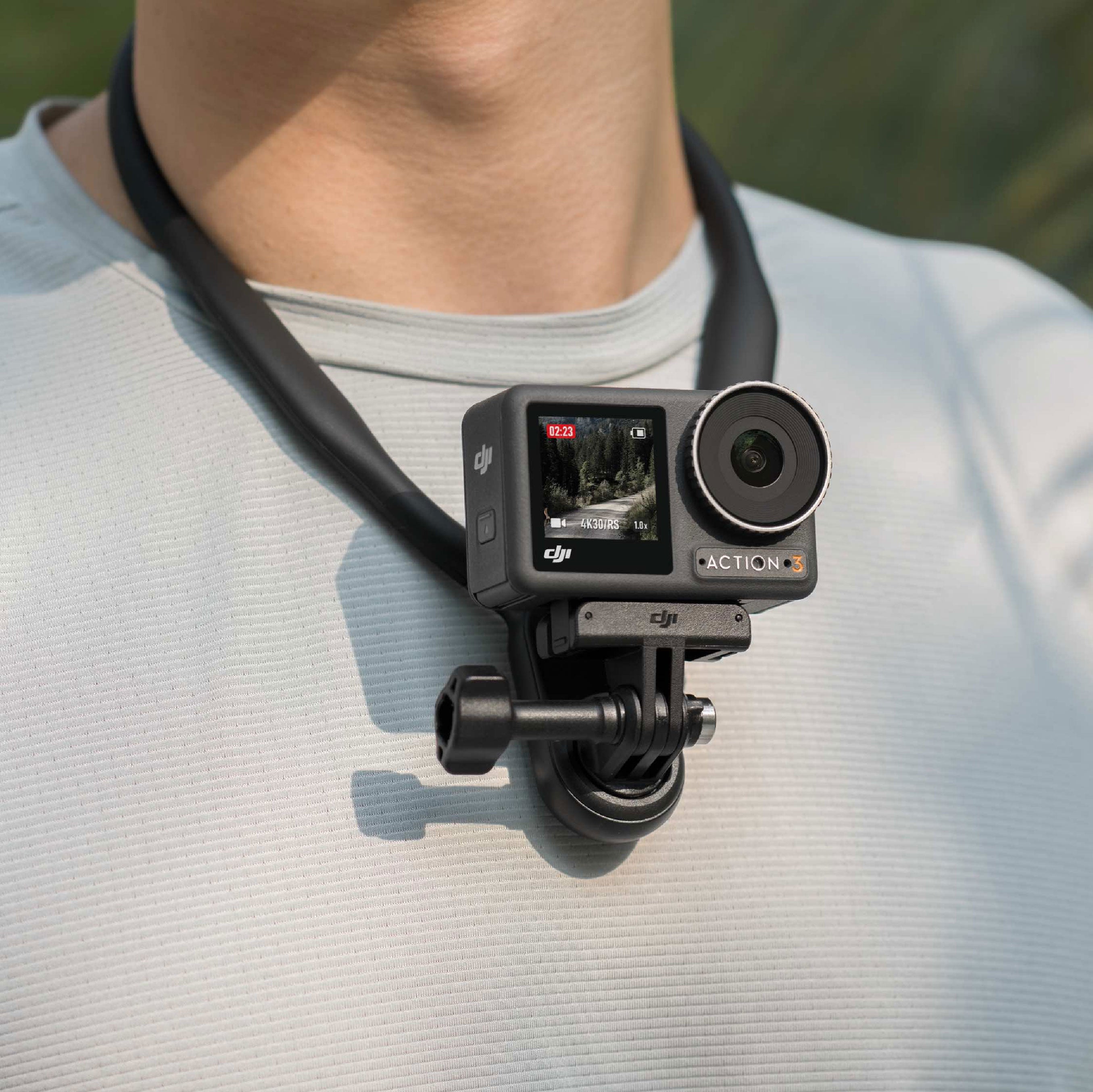 Capture hands-free footage using this DJI Osmo Action Hanging Neck Mount, which fits comfortably around your neck thanks to its shapeable silica gel construction. Your Osmo Action series camera mounts onto the apparatus with its built-in 3-prong mount and included locking screw. Capture first-person POV footage while mountain biking and fishing.