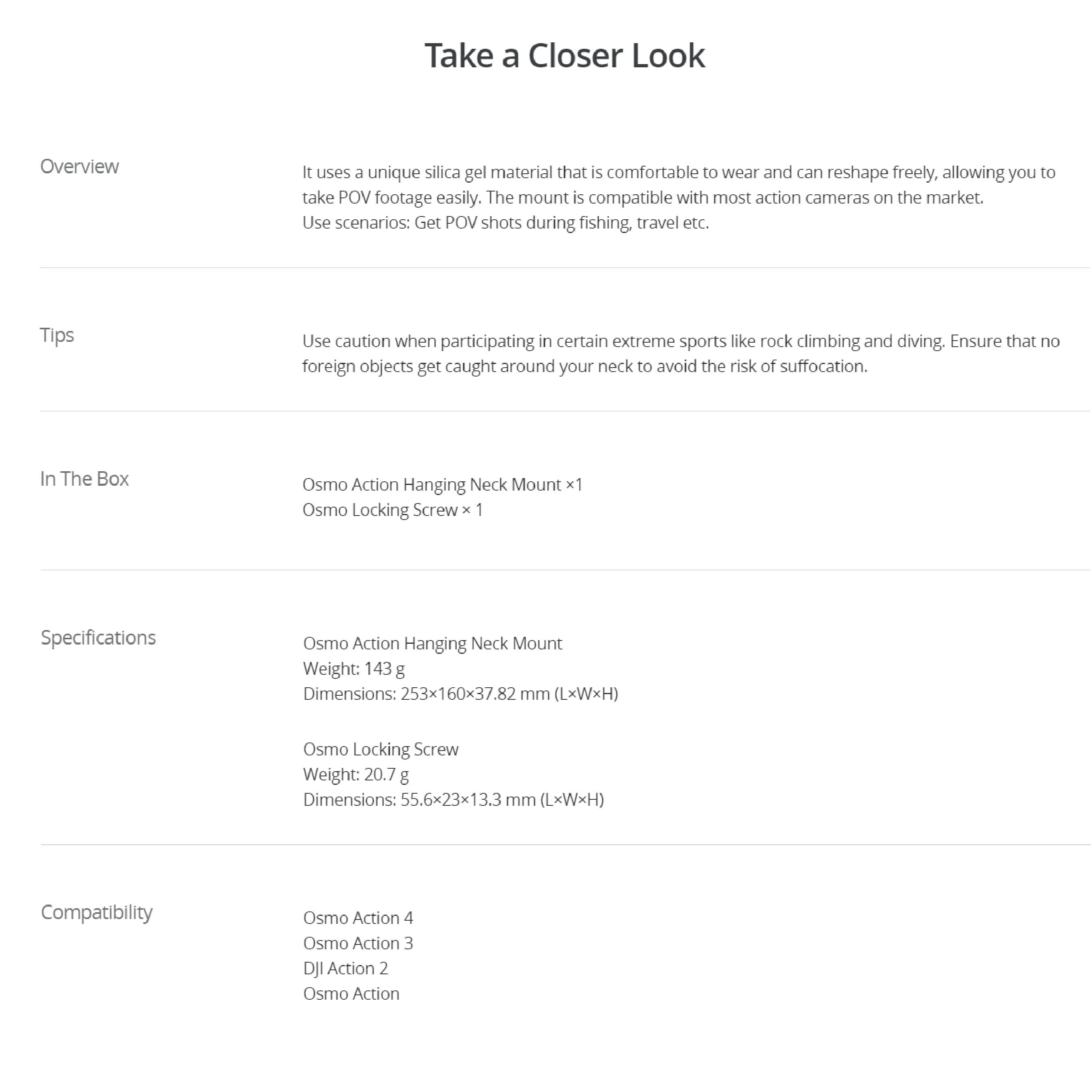 DJI Osmo Action Hanging Neck Mount
