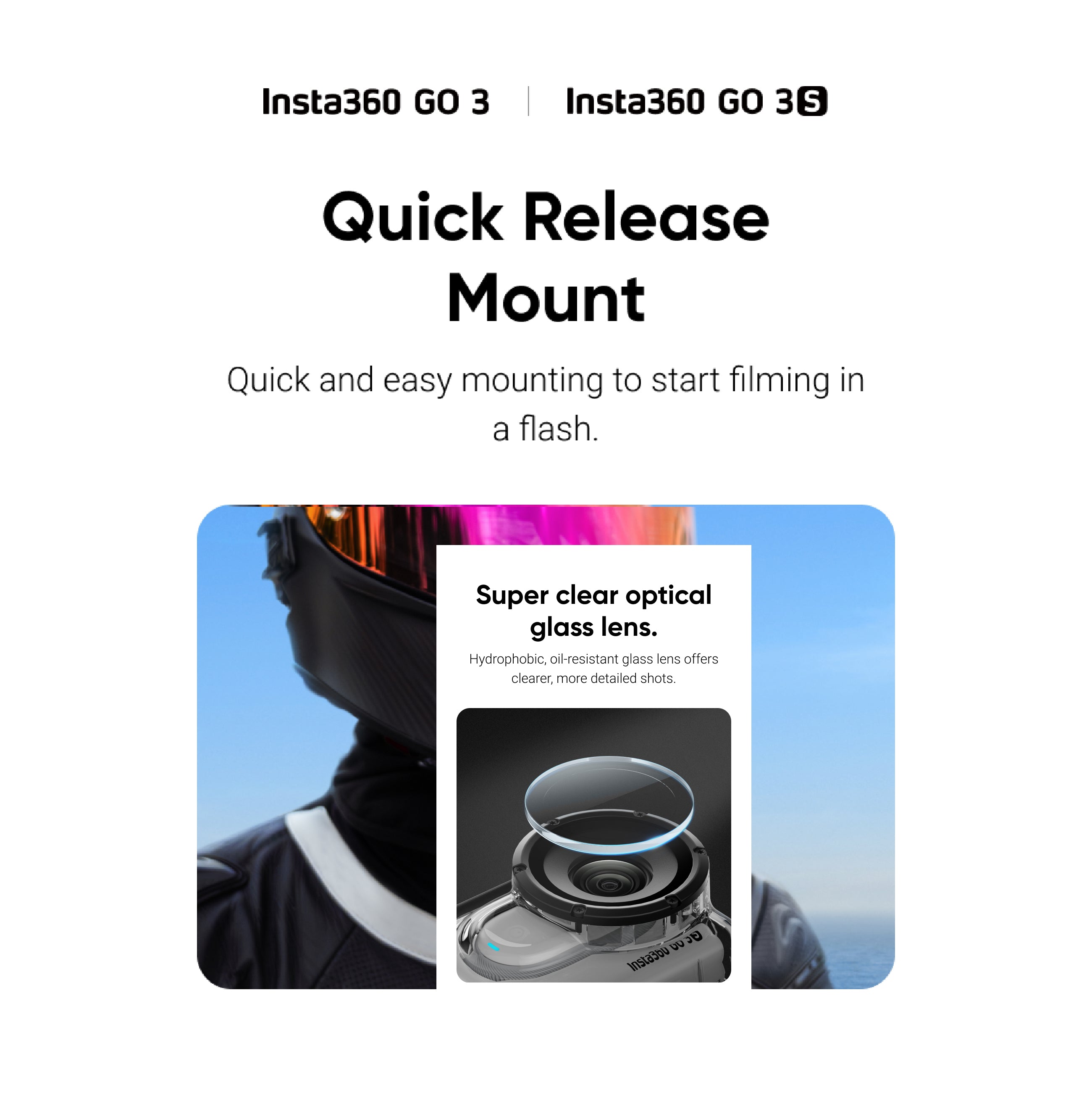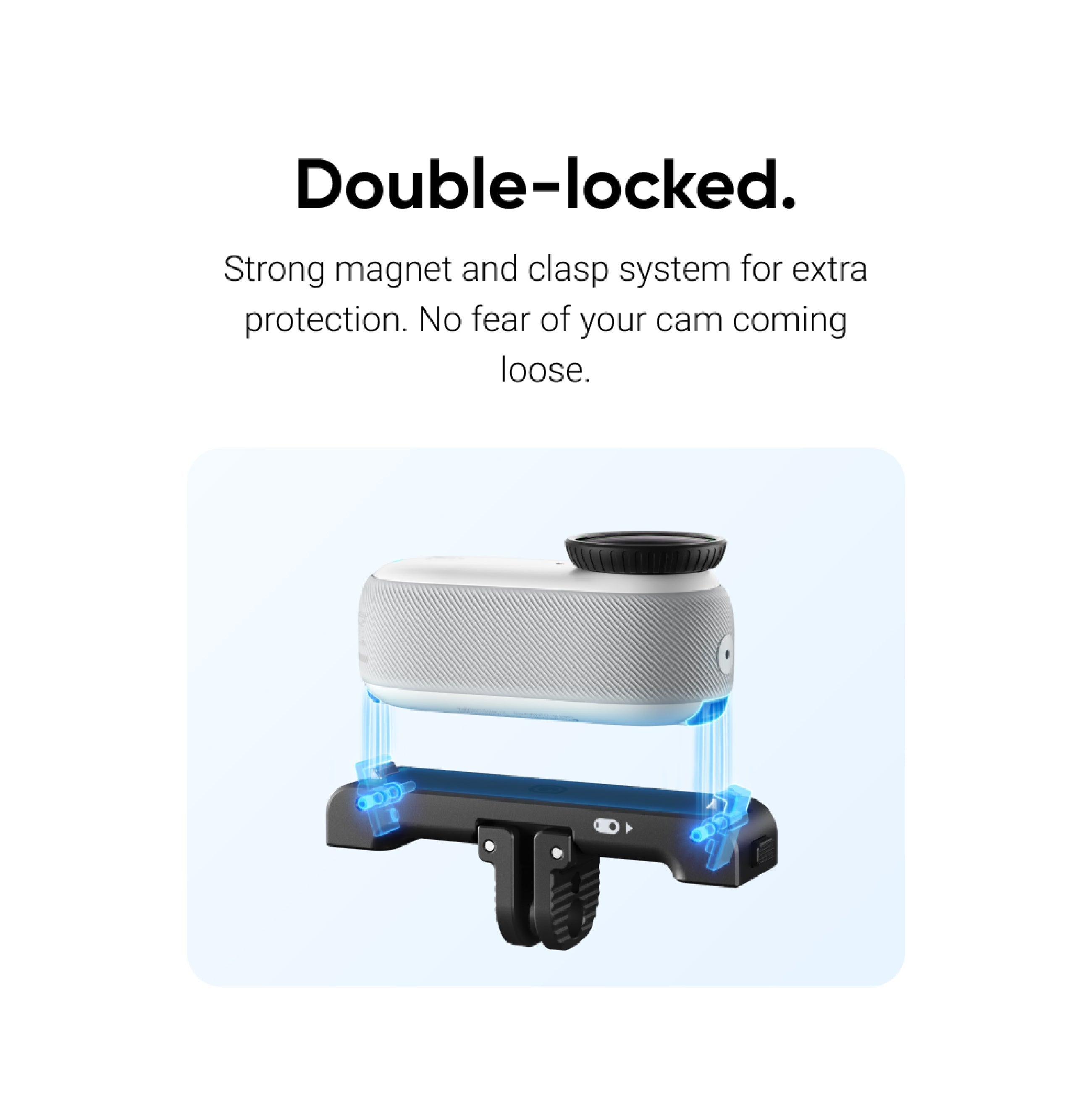 Mount your standalone GO 3/GO 3S camera or Action Pod. Secure double-locking system for worry-free use. Quick and convenient to mount or dismount. Easily change between accessories with a 1/4" screw and 2-prong mount connection. New silicone pads for vibration dampening and easier disassembly.