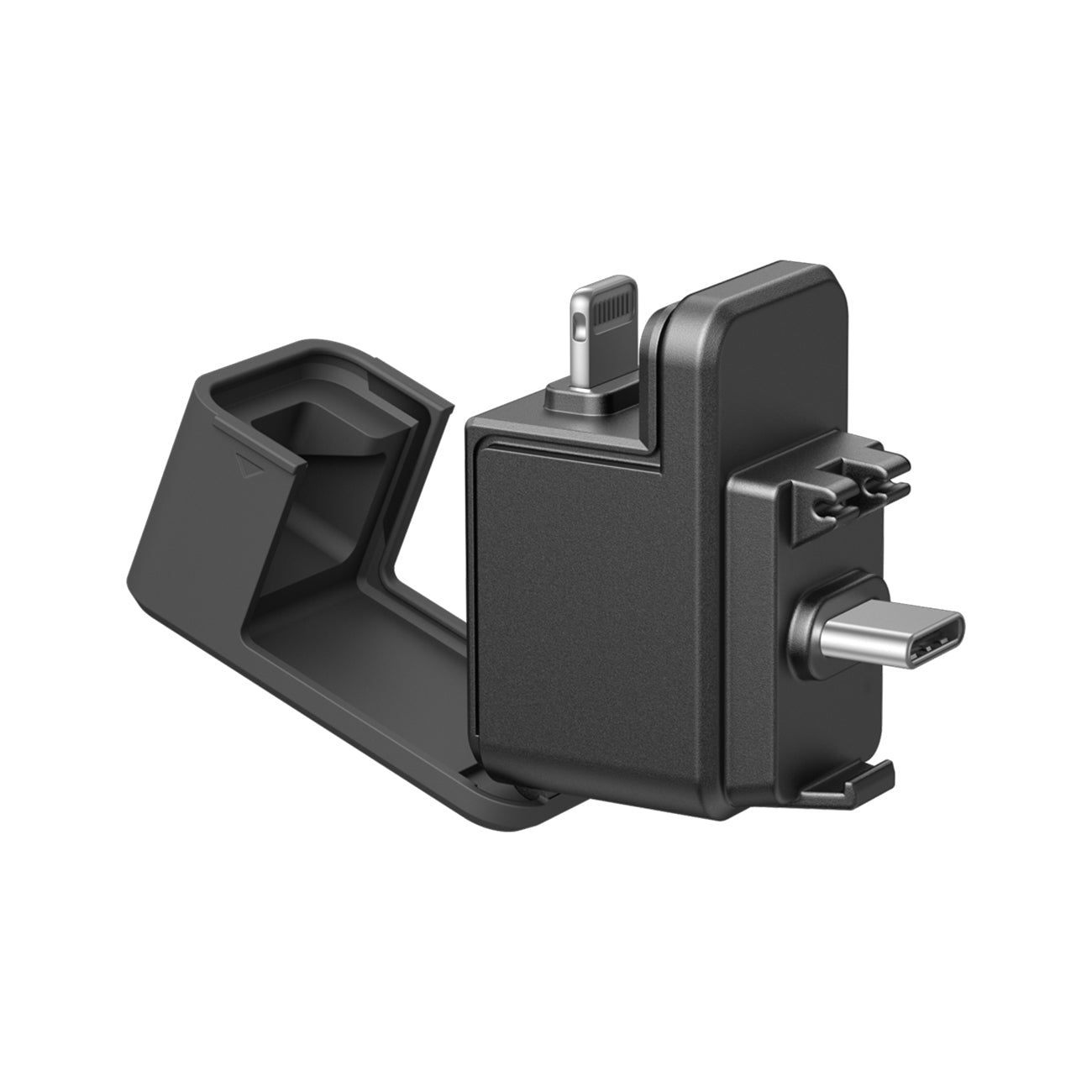 Shoot and store simultaneously, with a plug and play connection for smooth, fast editing or exporting on your phone. No need to power on or use Wi-Fi, simply connect directly to your phone. Uses USB-3.0 for faster large file transfers. Built-in USB-C charging port for charging your phone. Dual-head design compatible with both iOS and Android. Comes with extra storage slot for an additional memory card.
