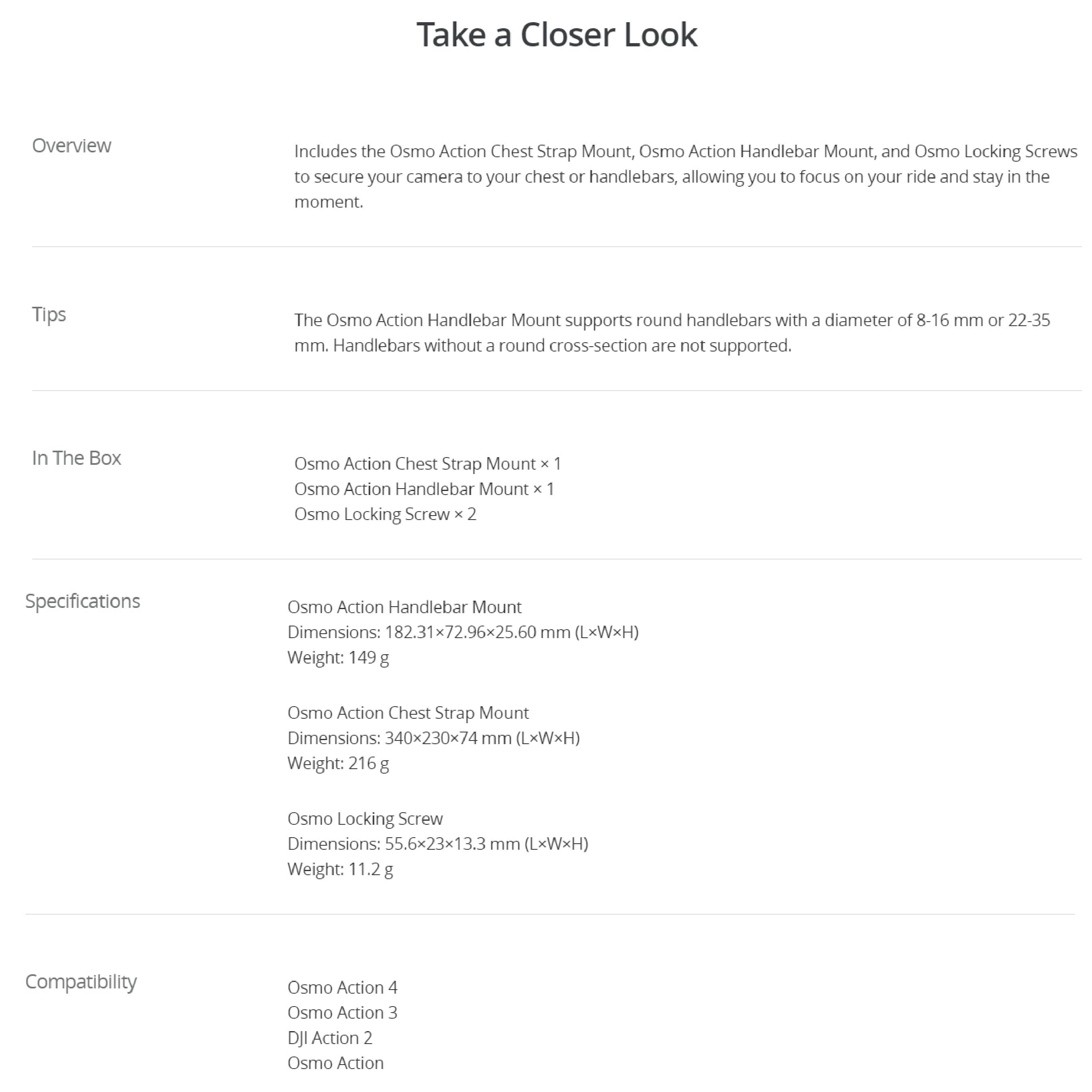 DJI Handlebar Mount For Osmo Action 4, Action 3, Action Specs