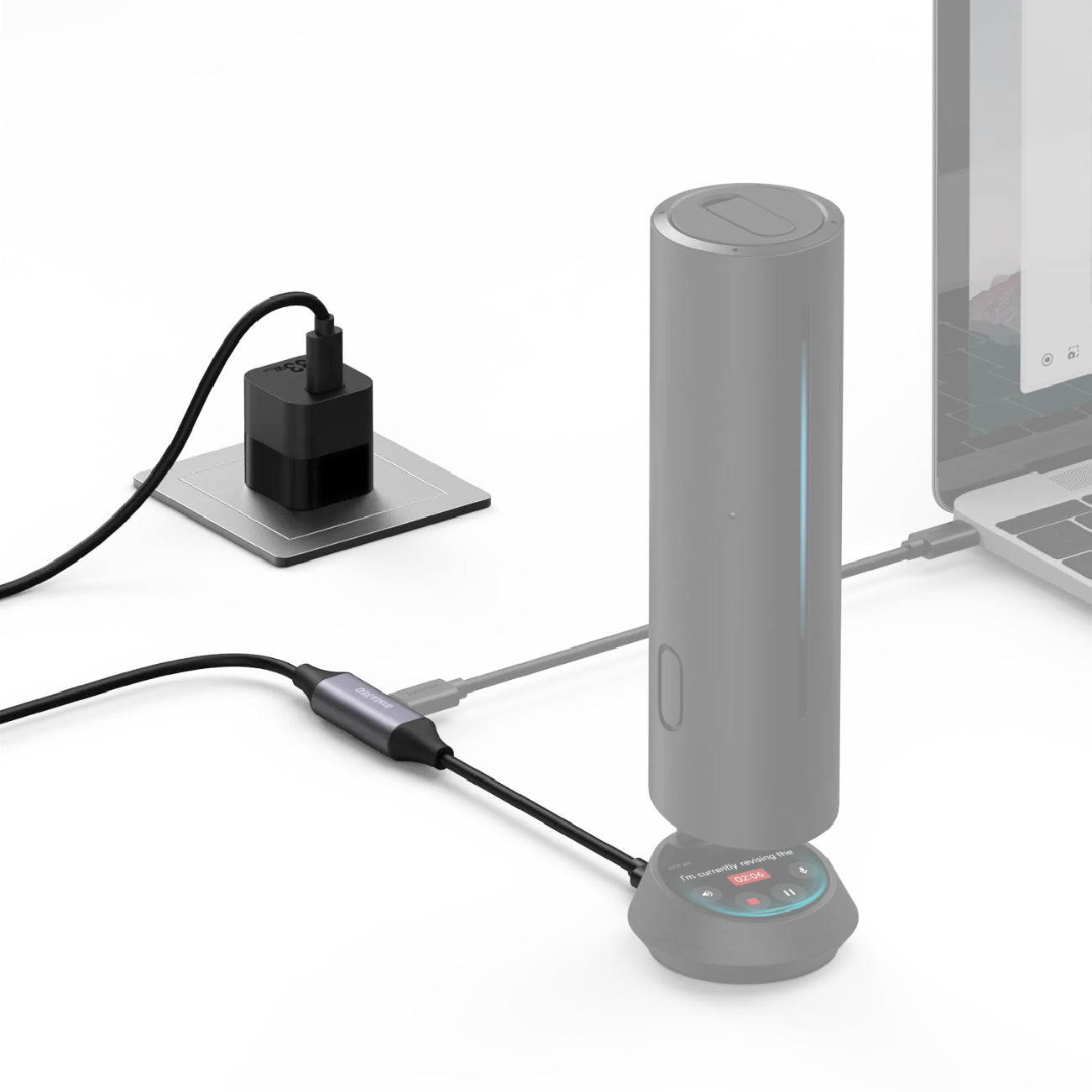 Y-Cable and Power Adapter. Provides continuous power for Insta360 Wave. 3.1m soft cable for easier routing and a clean install for meeting rooms. Comes with different plug types based on regional requirements. Built-in Type-C port connects to your PC with the provided USB-C cable for both power and data.