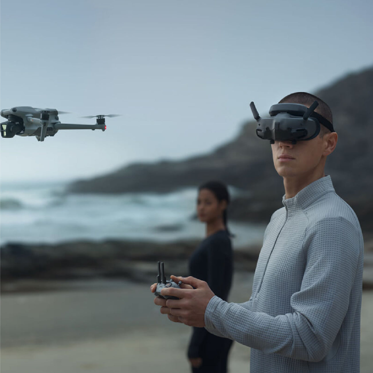 DJI Goggles 3 can be paired with DJI Avata 2 and DJI RC Motion 3 for intuitive body movement control. Merely tilt your head or wrist, and you will be flying Avata 2, enjoying an immersive and visually thrilling experience through the sky. Goggles 3 features the novel Real View PiP and comes equipped with DJI O4 low-latency video transmission, offering reliable safety and stability for your flights.