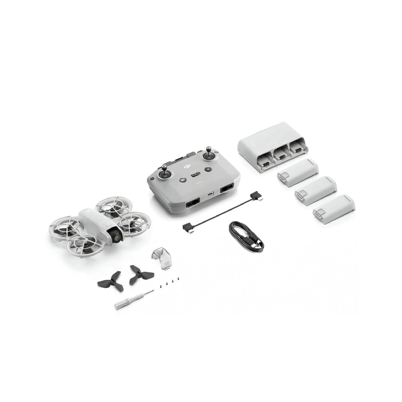 The DJI NEO is a FPV drone with built-in propeller guards that ensures safe flights for beginners and enthusiasts. Take off from the palm your hand and take control with your phone or with the RC-N3 remote. You can also go completely hands free and use Palm Control. Palm Control also includes Focus Track which follows your subject without controlling the NEO.
